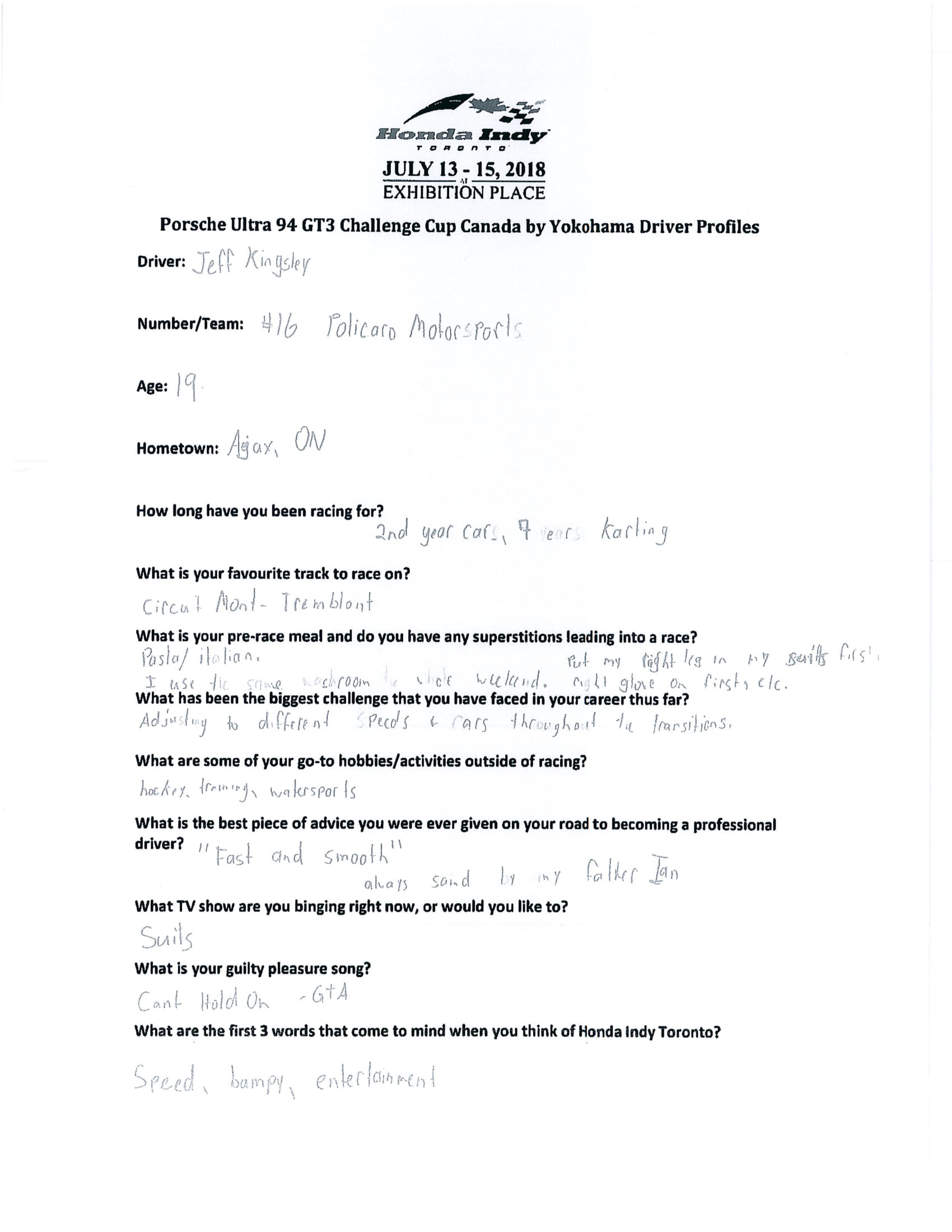 LATEST NEWS Porsche GT3 Cup Canada Profile: Jeff Kingsley Honda Indy Toronto News 07 July 2018 Previous article: Honda Indy Toronto Seating Guide Prev Next article: NASCAR Pinty's Series Profile: Alex Tagliani Next